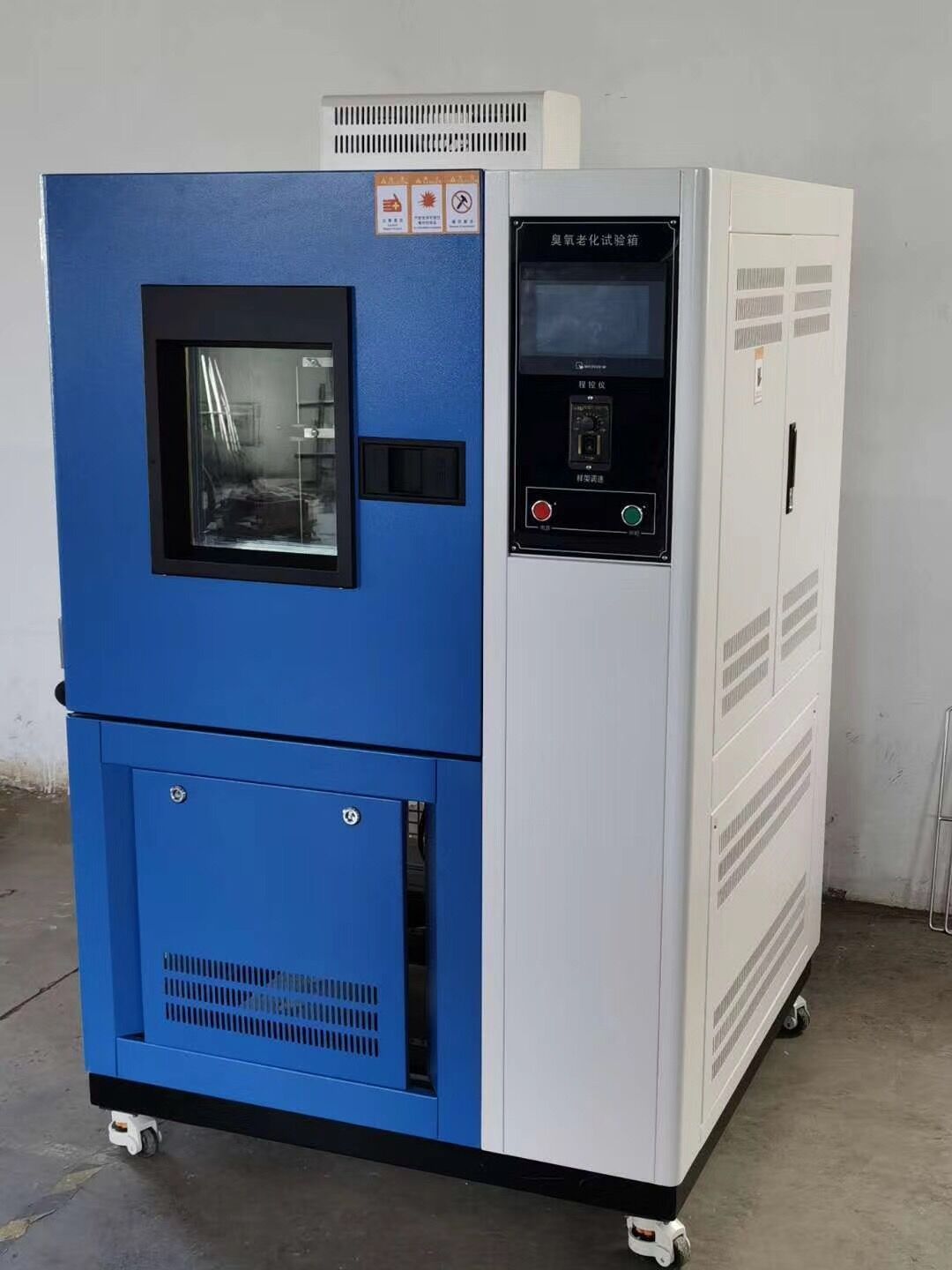 臭氧老化试验的方法有两种:一种是静态应变试验法,另一种是动态应变试验法。臭氧老化箱由三大部分组成即:调控系统、臭氧发生系统、试样老化箱室和臭氧测定。臭氧发生装置系统:主要包括臭氧发生器、空气净化装置、热交换器和气流控制系统等部件。臭氧发生器采用高压无声放电管,高压无声放电管则可获得较高浓度的臭氧,试样老化箱室是封闭式的、无光照的(除间歇照明外)。箱门上开设了一个可以观察试样表面的窗口,试验箱外壳采用的是冷轧钢板静电喷塑,外形美观大方;箱室内壁、导管、试样夹具和结构材料等采用不易分解臭氧的不锈钢或防腐的惰性材料来制造。此外设备还安装有定时装置,臭氧浓度测定、调控装置均采用的智能数显控制仪,可直接设定臭氧浓度值,实行PLC自调节控制,控制精度高,操作简单方便。